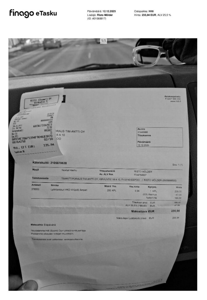Meillä käytössä Hiltin parhaimmaksi koetut työkalut ja aiomme niitä jatkossakin käyttää. Työkalut ovat kestäviä ja tehokkaita. Huollot toimii nopeasti myös.